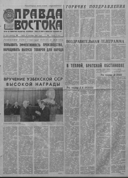 Правда Востока (Узбекистан), № 208, 9 сентября 1981г.