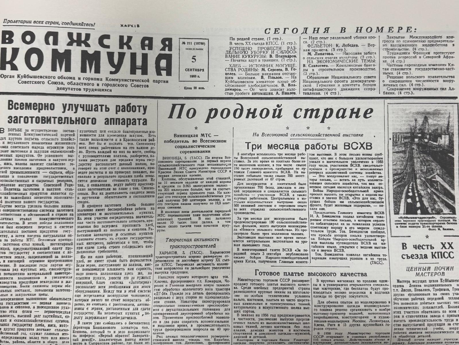Волжская коммуна (Самара), № 211, 6 сентября 1955г.