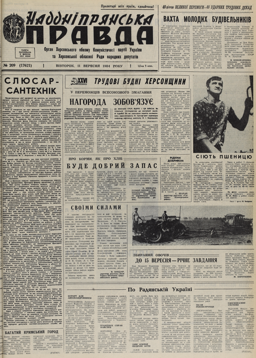 Наддніпрянська правда (Херсон), № 209, 11 сентября 1984г.