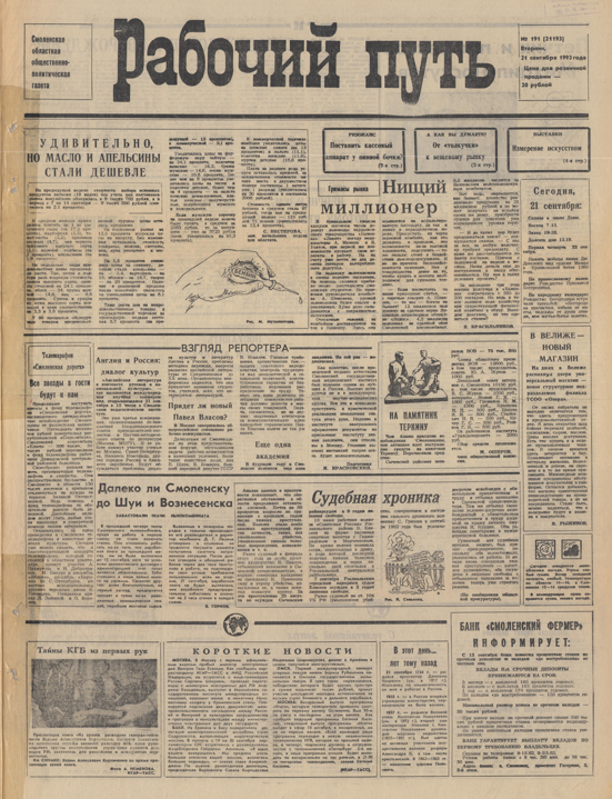 Рабочий путь (Смоленск), № 191, 21 сентября 1993г.