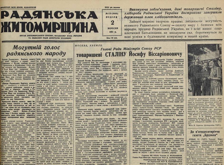 Радянська Житомирщина, № 173, 2 сентября 1951г.