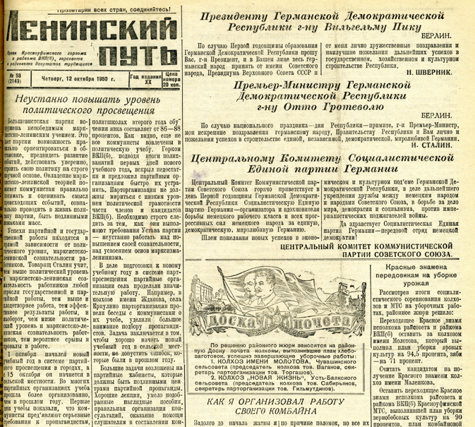 Ленинский путь (Красноуфимск), № 58, 11 октября 1950г.