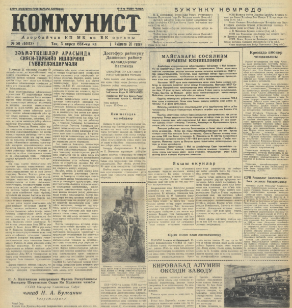 Коммунист (Азербайджан), № 80, 3 апреля 1956г.
