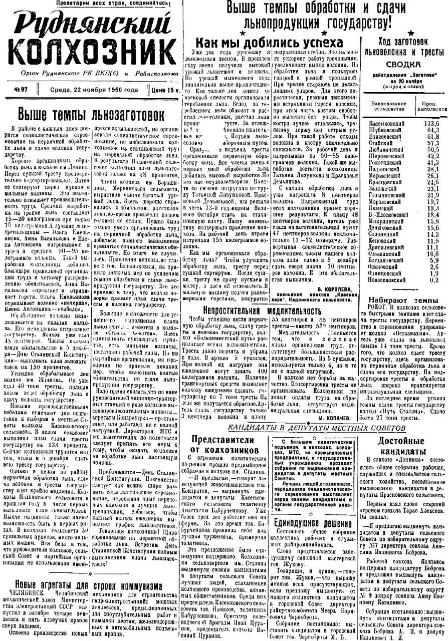 Руднянский колхозник, № 97, 23 ноября 1950г.