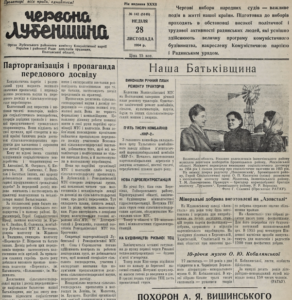Червона Лубенщина, № 142, 28 ноября 1954г.