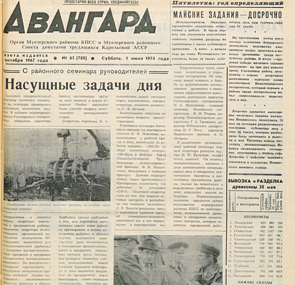 Авангард (Муезерск), № 65, 1 июня 1974г.