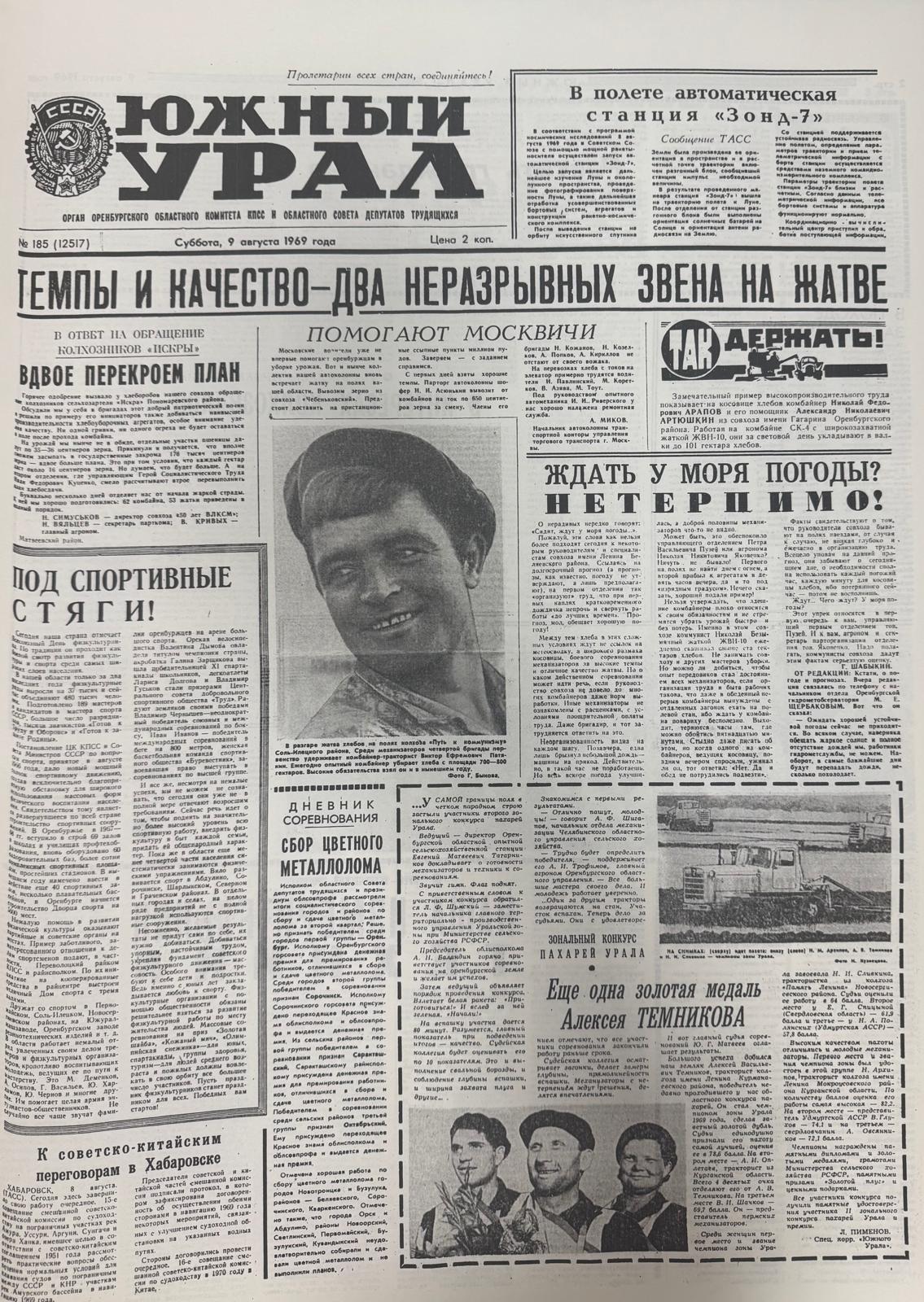 Южный Урал (Оренбург), № 185, 9 августа 1969г.