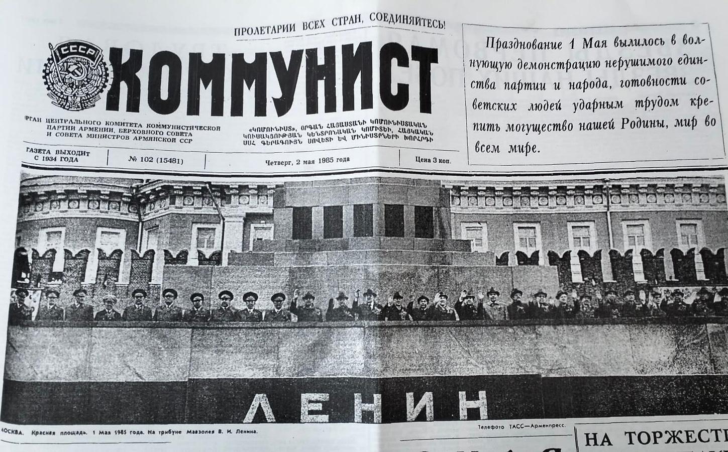 Коммунист (Армения), № 102, 2 мая 1985г.