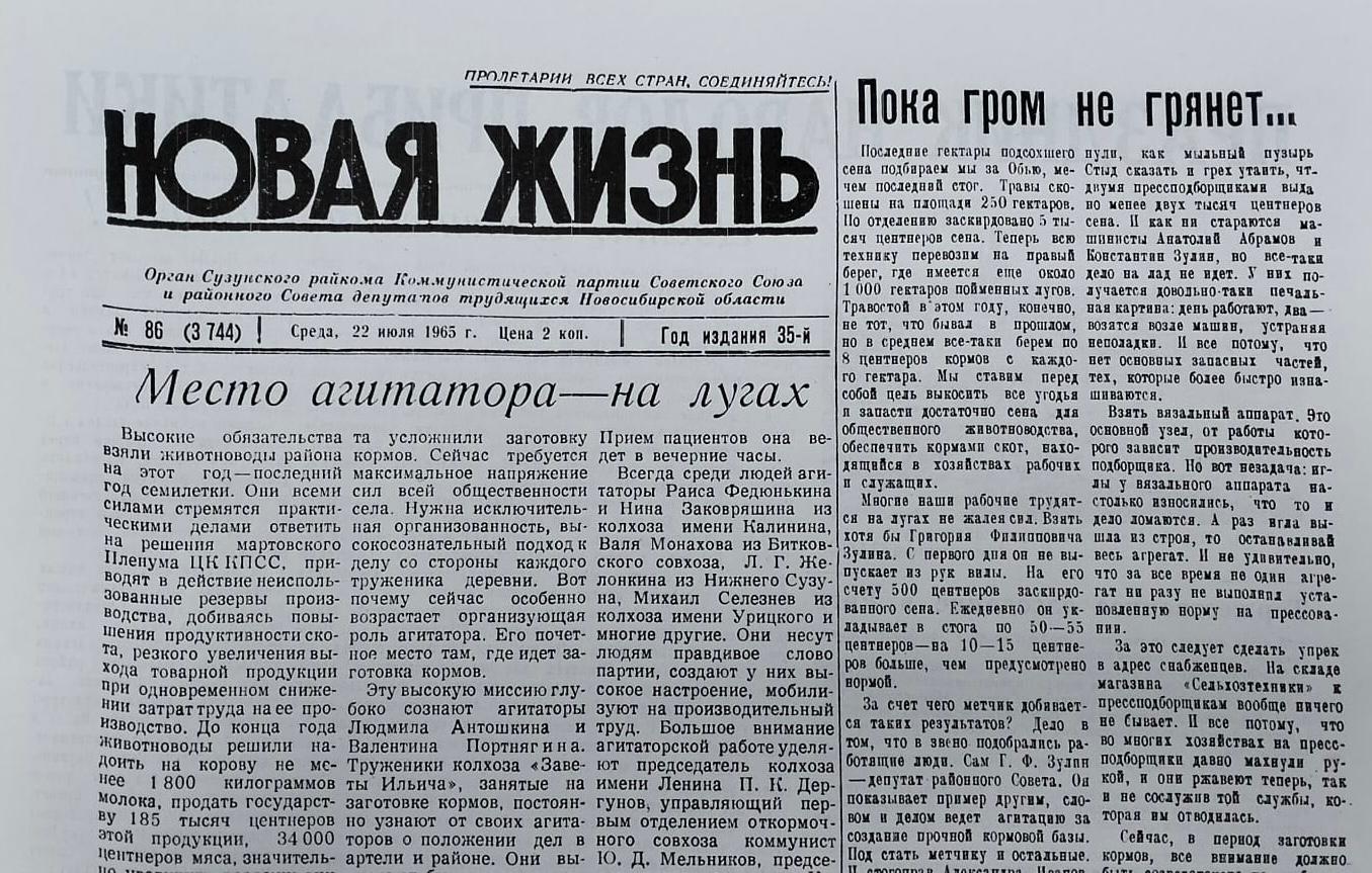 Новая жизнь (Сузуны), 22 июля 1965г.
