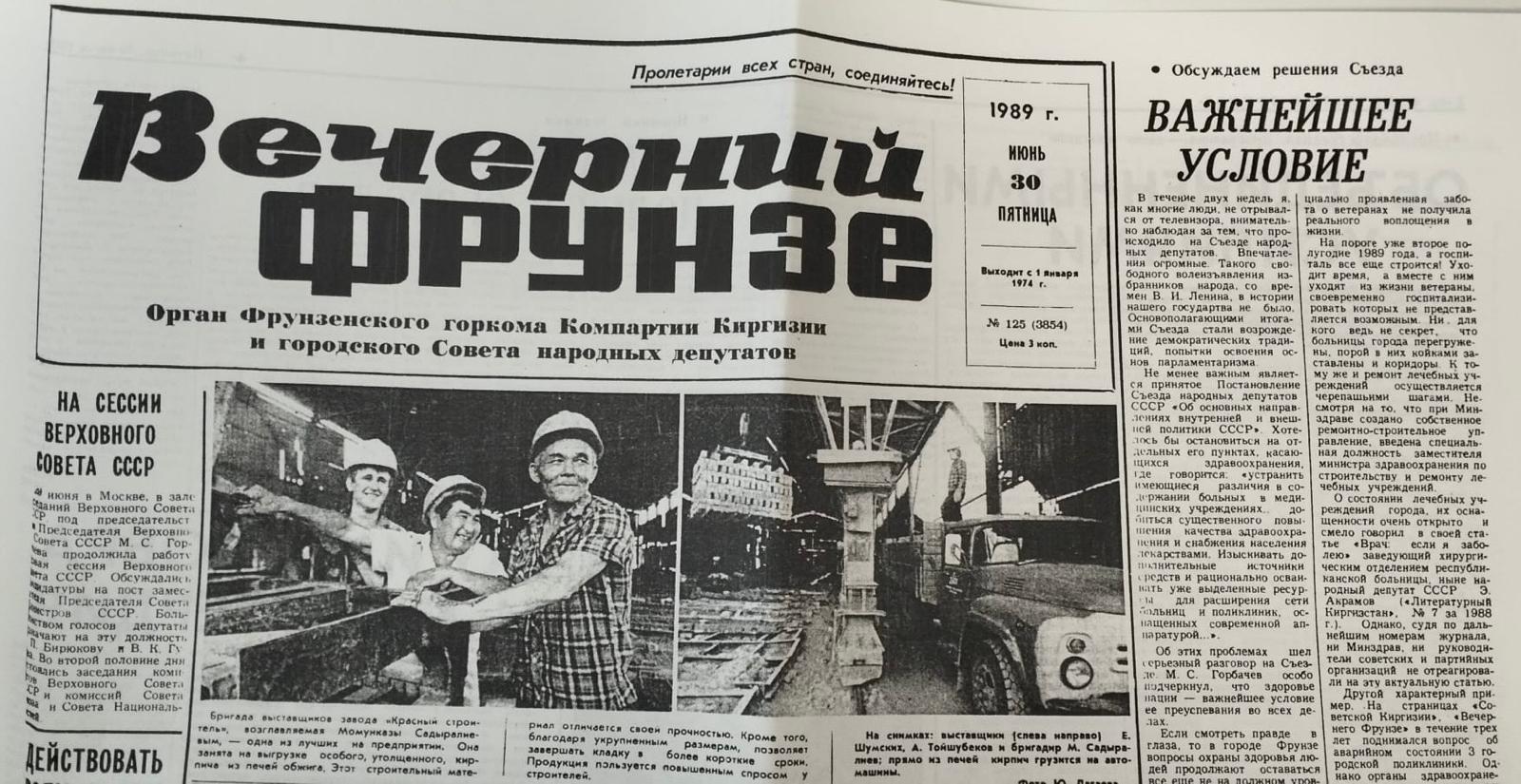 Вечерний Фрунзе, № 125, 30 июня 1989г.